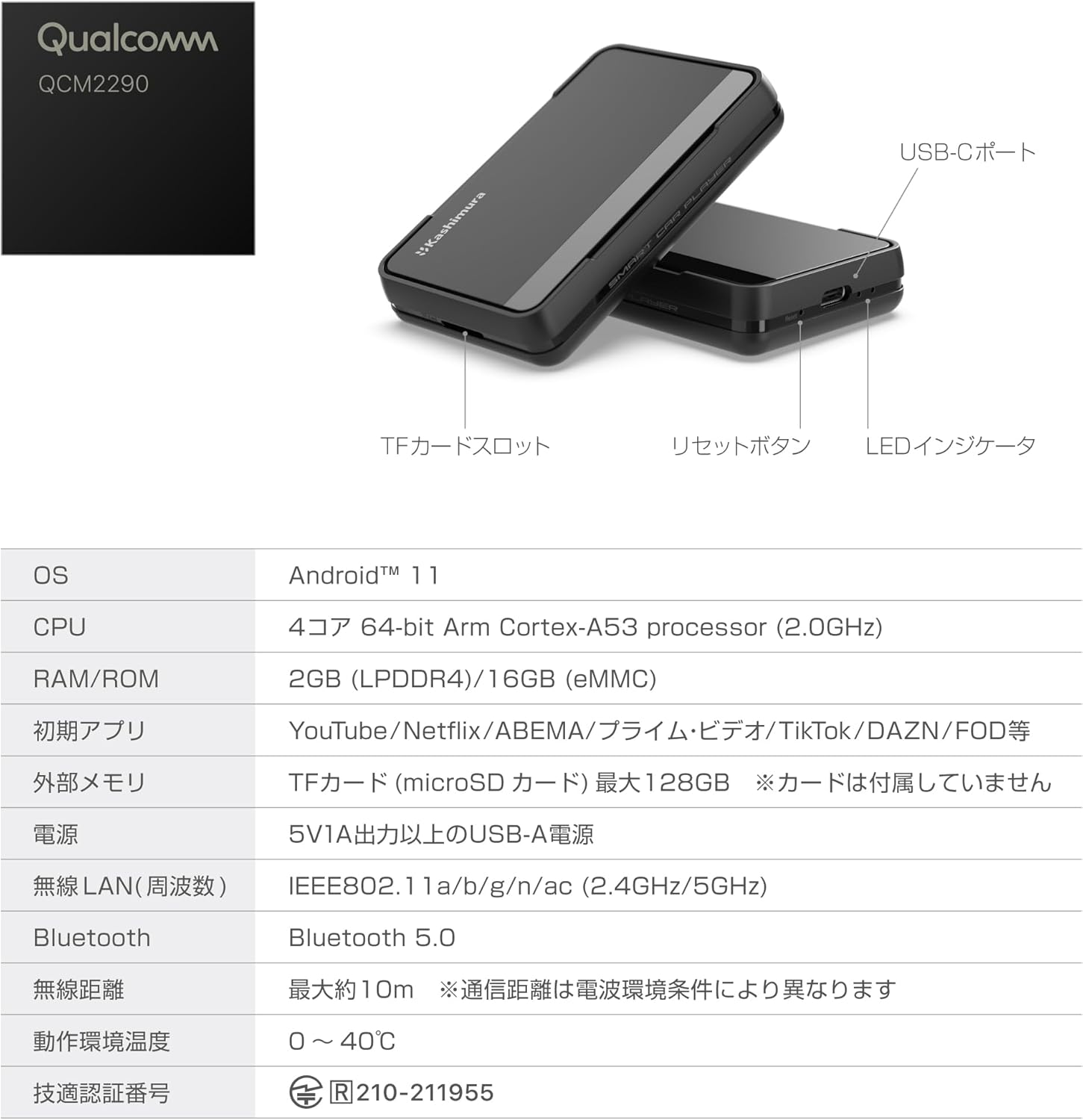 ●クアルコム製チップQCM2290&Android 11システムで安定動作。