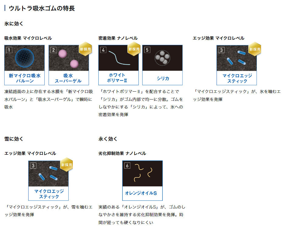 ・シリカ配合のウルトラ吸水ゴムは、ゴムがしなやかなので路面に密着