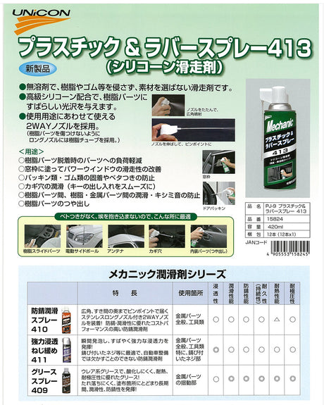 石原ケミカル UNICON ユニコン プラスチック&ラバースプレー 413 シリコーン滑走剤 420ml 15824