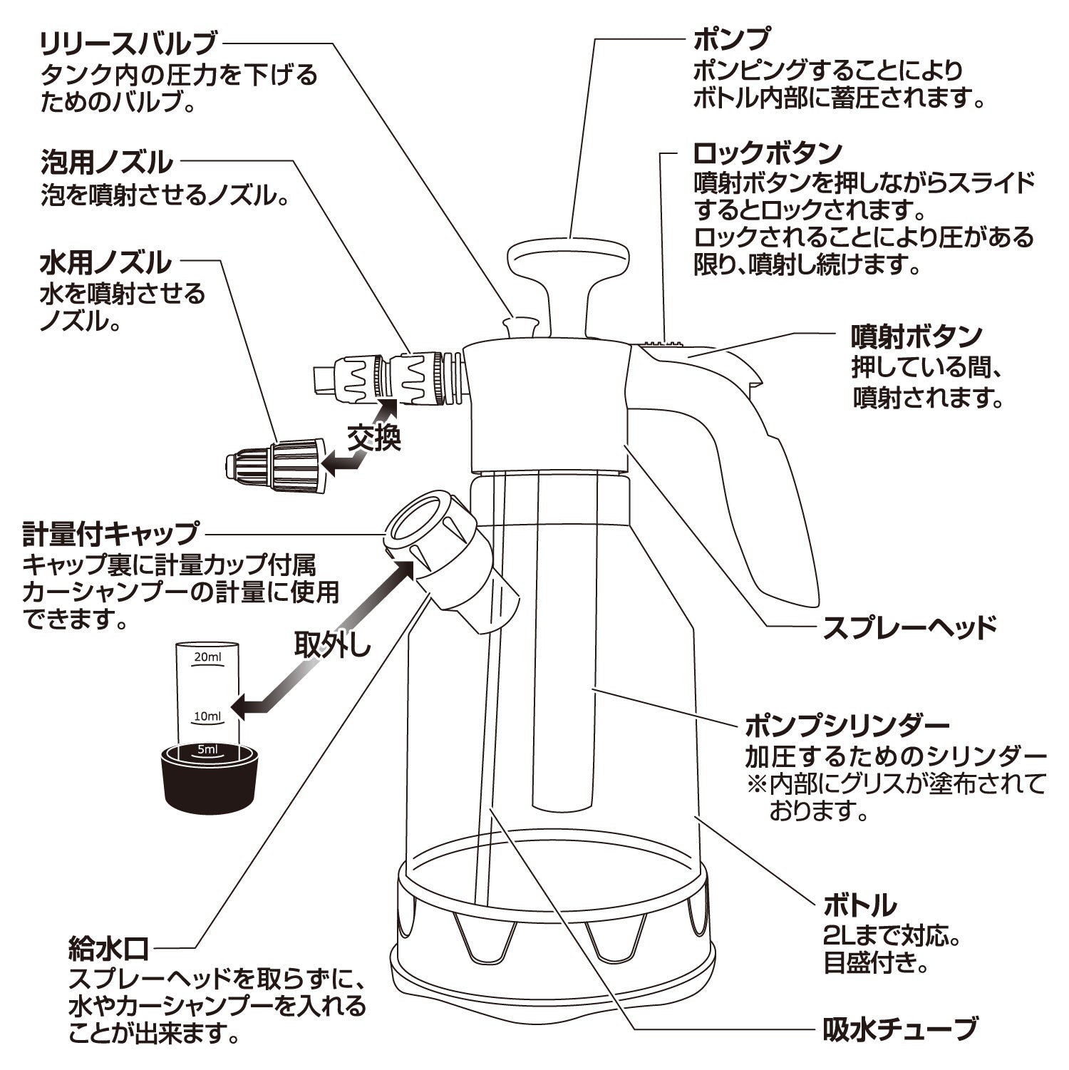 噴射ノズル2種類(泡用ノズル・水用ノズル)