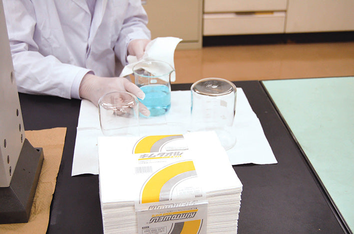 定番のキムタオル4つ折りの白色タイプ。衛生面を重視する現場で活躍。リーズナブルで吸収力のある4枚重ねタイプ。