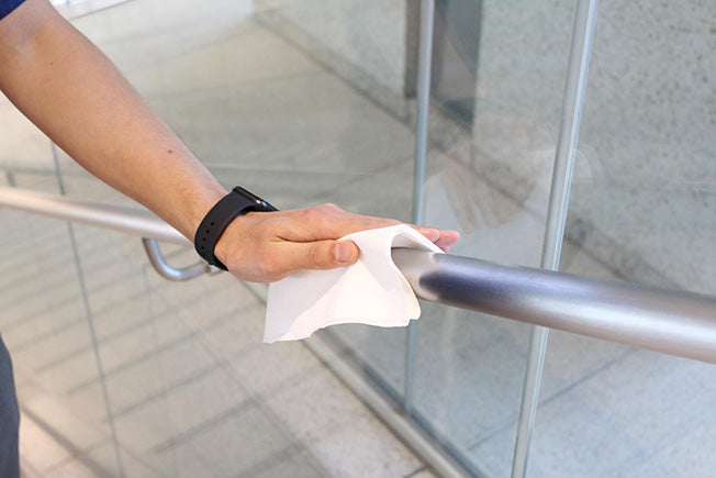 定番のキムタオル4つ折りの白色タイプ。衛生面を重視する現場で活躍。リーズナブルで吸収力のある4枚重ねタイプ。