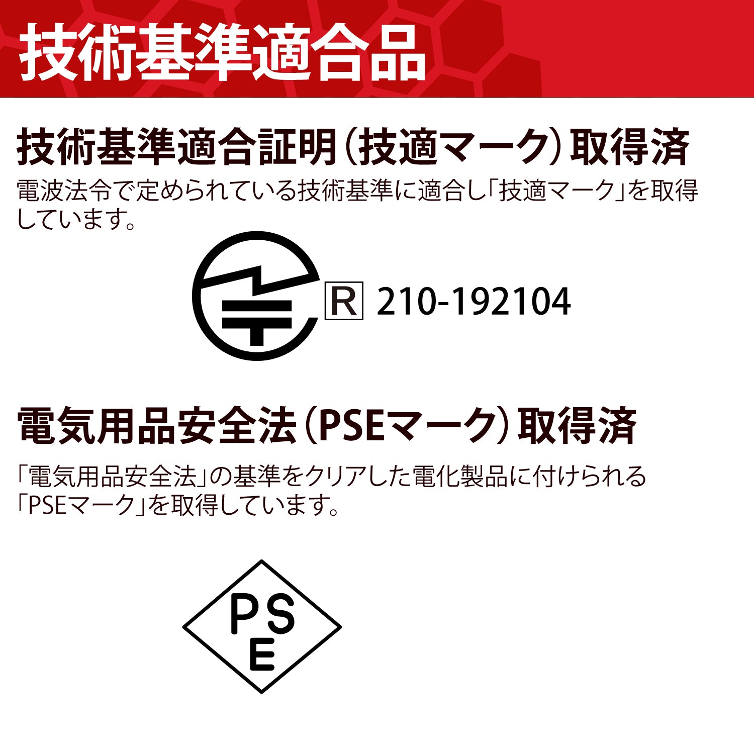 ●技術基準適合証明ラベルは絶対に剝がさないでください。電波法により罰せられることがあります。